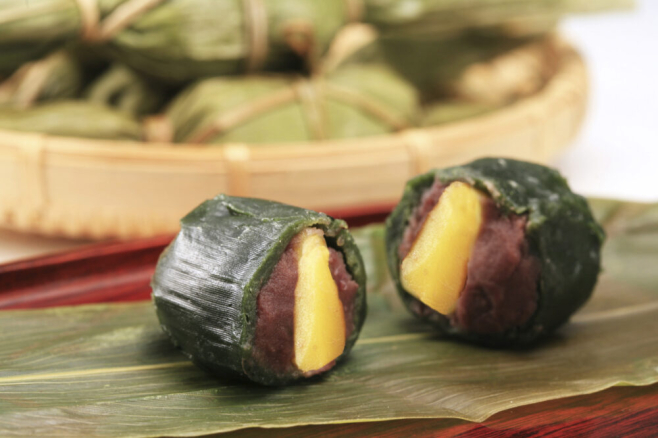 国産の良質のもち粉を使用し、杵つき方式でつきあがったコシのある生地。さらに後蒸し製法でさわやかに鼻を通るヨモギ、笹の香りと風味が絶妙です。