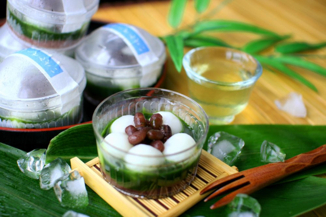 | 原材料 | 白玉粉(タイ産)、小豆(北海道産)、白いんげん、挽茶(村上茶)、砂糖、寒天、食塩/トレハロース、酵素(大豆由来)、クチナシ色素、香料 |